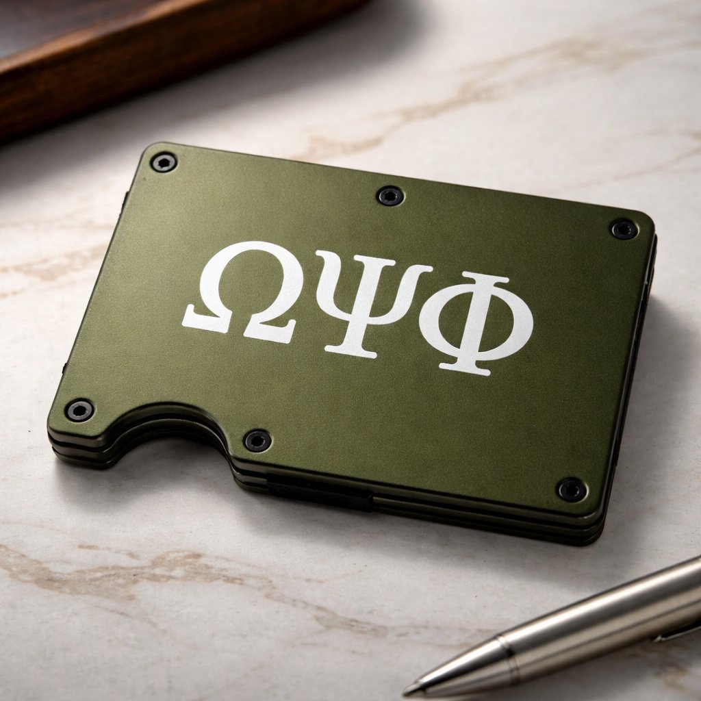 Omega Psi Phi minimalist wallet card holder with money clip.